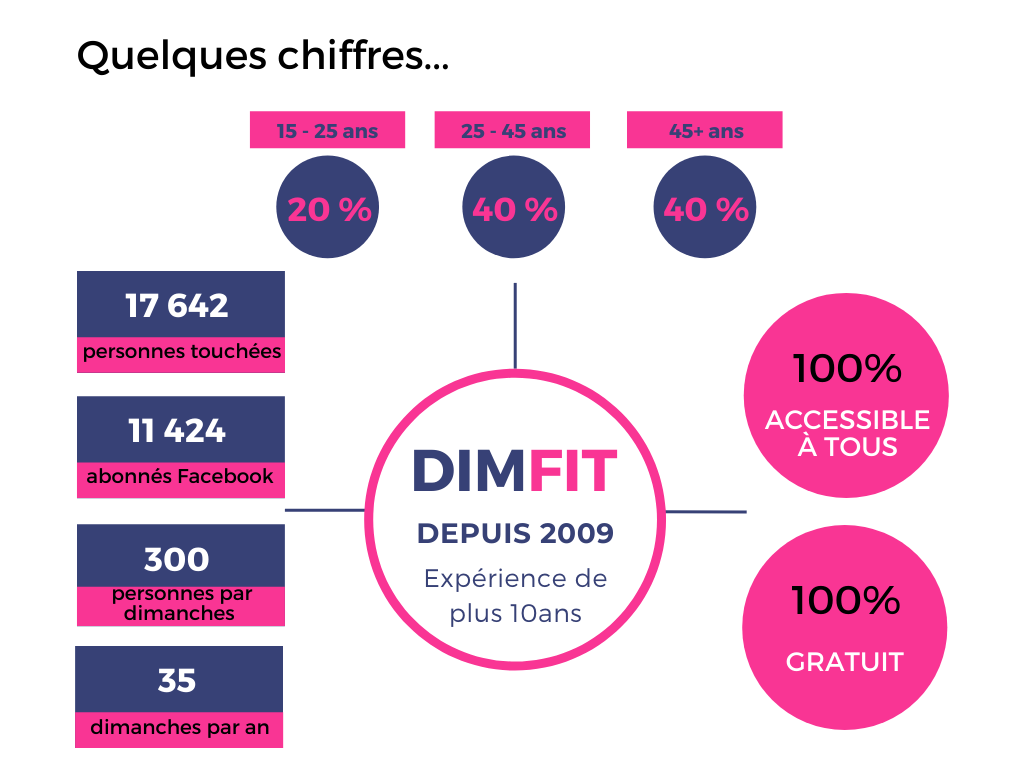 DimFit assure une rรฉelle passerelle pour reprendre une activitรฉ physique rรฉguliรจre en prenant du plaisir ร pratiquer une activitรฉ sportive. Une population active et moins sรฉdentaire est en meilleur santรฉ !